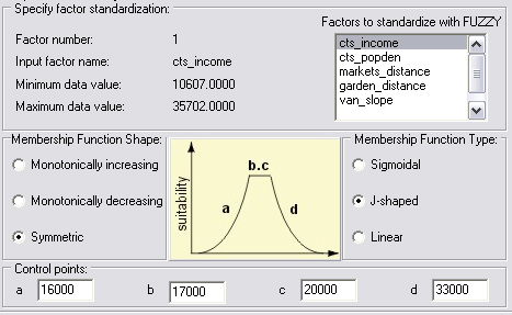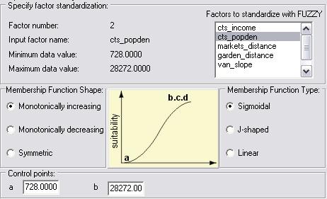 I standardized all the factors and made them fuzzy. Then I defined the weights as follows totalling to 1: