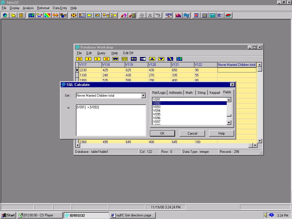 As I was selecting the appropriate data tables and fields, I realized that I needed to create some extra fields for analysis. For instance, the census data separate the male and female never married children category in Table 1, but I am interested in the total tally of 15-24 age group never married children who stay at home.