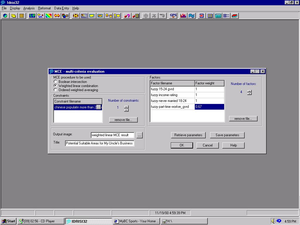 analysis, while values of the other our factors were being weighted and