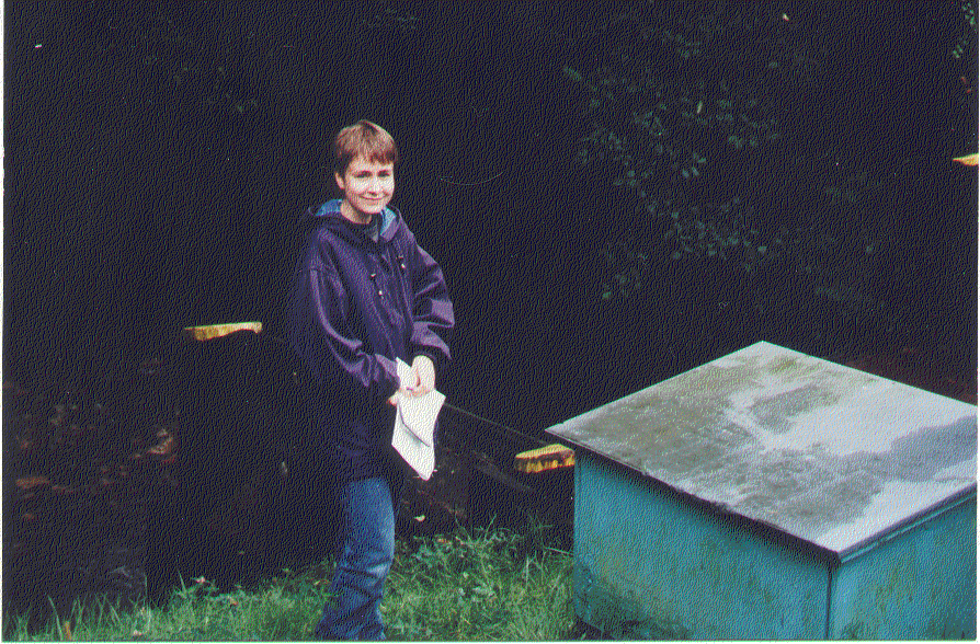 me (no hair) by a (GASP!) hydrometric station on MacKay Creek in North