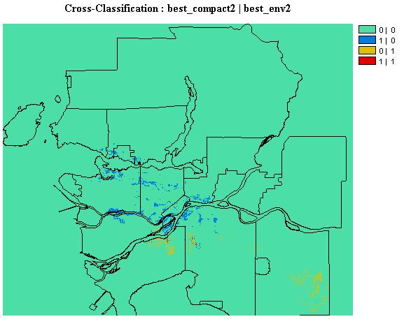 Is there any conflict between the areas selected under the 2 scenarios? In other words, would one pixel be the best allocation for both of the scenarios at the same time?