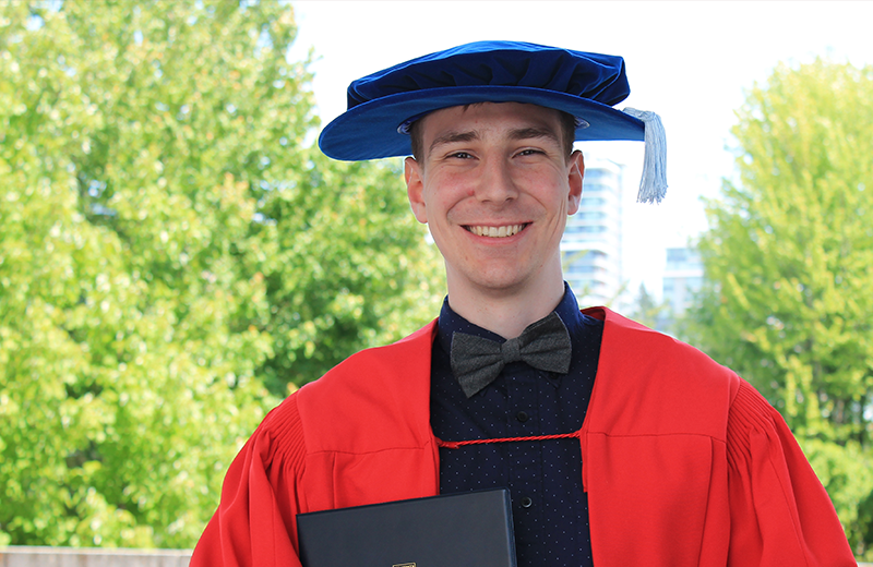 After completing his undergraduate degree (BSc) in Honours Physics here at SFU, Blaber went to the University of Waterloo to complete his MSc, before coming back to SFU to undertake more research under his supervisor, Dr. David Sivak for his PhD.