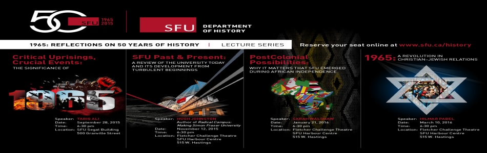 This year's lecture series, 1965: Reflections on 50 Years of History, honours both the 50th anniversary of the inception of Simon Fraser University, and the real legacy of our 50 years as a department, our alumni.