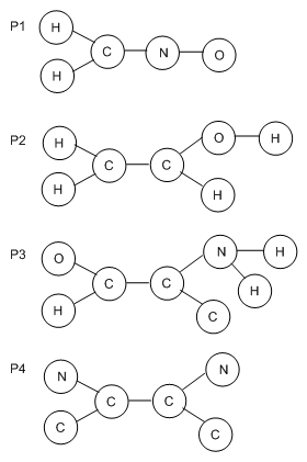 To design our search strategy, we start with the simple fact that any concept learned will be true of at least one positive (toxic) drug. If we look at P1, then there are only two triples of atoms in the molecule (if we do not allow a triple to be written backwards):