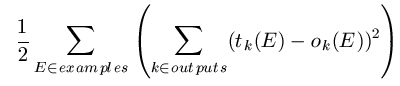 This is not as complicated as it first appears. The calculation simply involves working out the difference between the observed output for each output unit and the target output and squaring this to make sure it is positive, then adding up all these squared differences for each output unit and for each example.