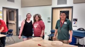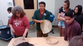 We had a great afternoon making hand drums. There were more than a half dozen volunteers who worked to prepare the hides and sinew for our workshop with Gary George. In addition to the prep-work, Deborah Smith, Christine Thompson, Keisha Whitford, and Kyle Bobiwash all came to lend a hand at the workshop. A very successful day.