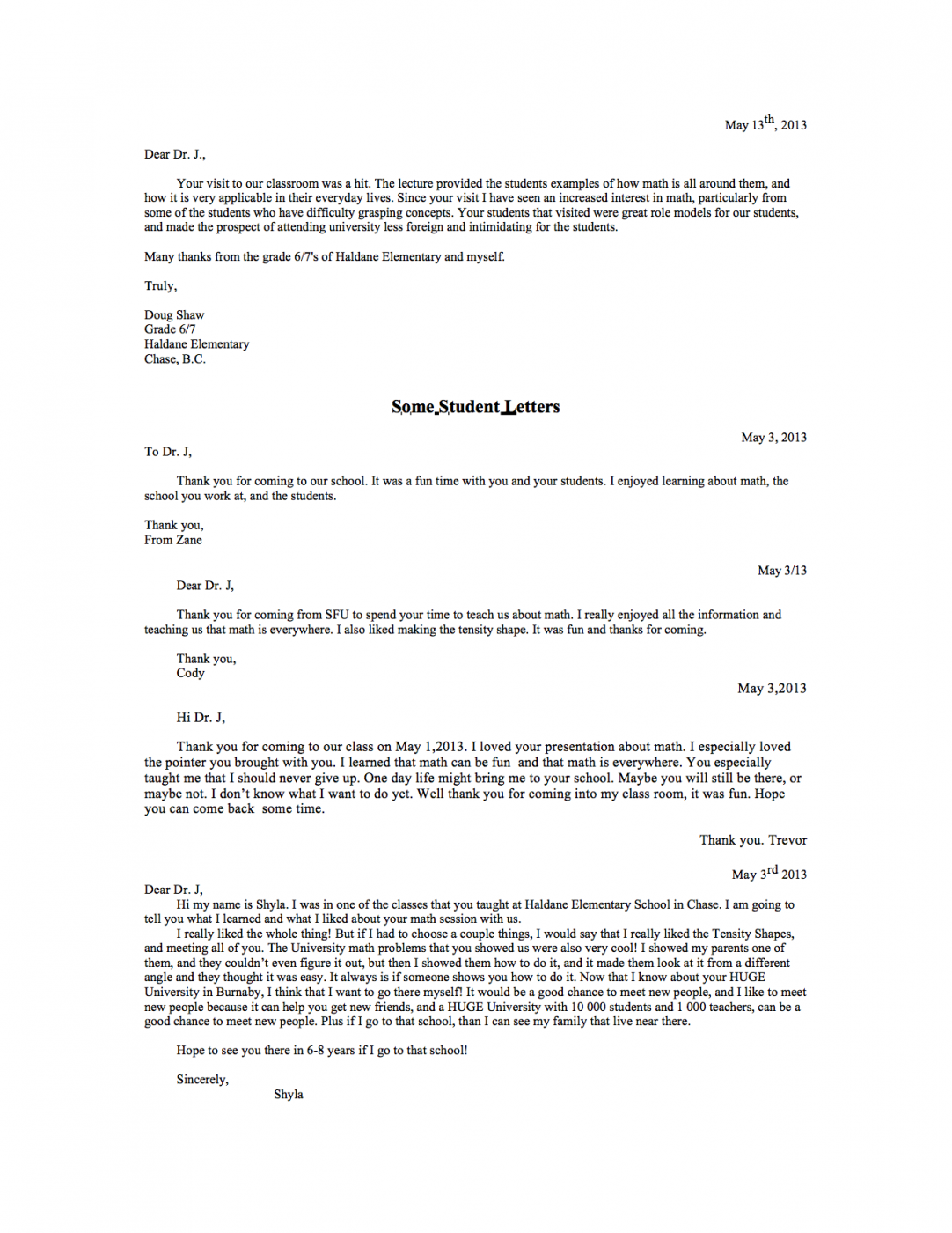For today’s learners: We present the Math Catcher Outreach Program in the classroom to encourage elementary and high school students to recognize how math is used in everyday life and how it forms the basis for many of our daily decisions and life-long choices. We use storytelling, pictures, models and hands-on activities to encourage young people to enjoy math and to help dispel myths that math is boring and abstract. We offer free-of-charge Math Catcher visits to schools across British Columbia. The program also organizes annual math summer camps at SFU's Burnaby campus and workshops at SFU and at other locations.
