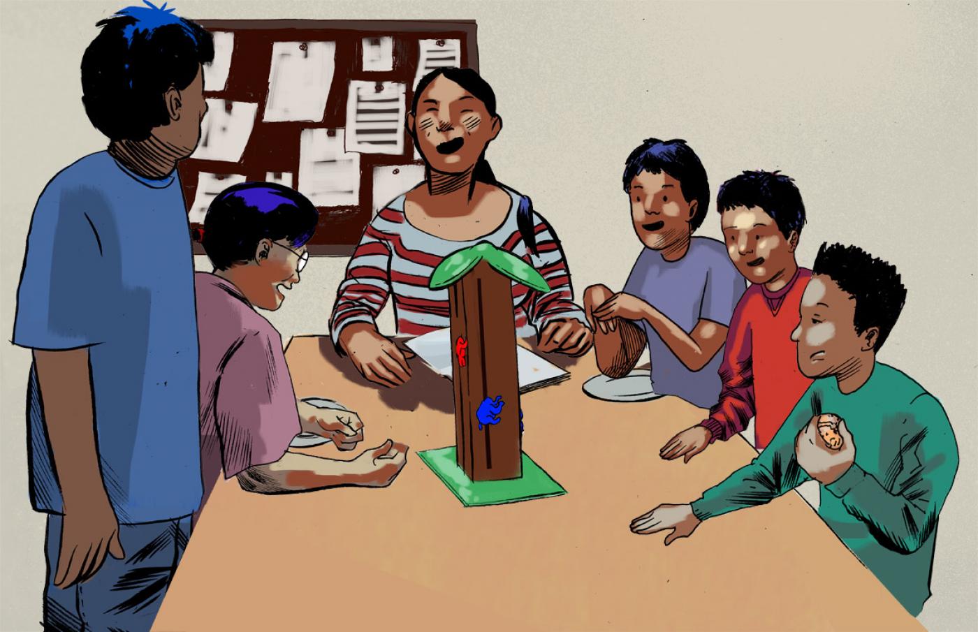 Small Number is a young boy who gets into a lot of mischief. He lives in a big city with his mother and his older sister Perfect Number. Twice a week, after school, he goes with his friends to the Aboriginal Friendship Centre. There the boys first have a snack and then they do mathematics for half an hour. Sometimes they do algebra in their workbooks, but usually they play mathematical games. Small Number’s favorite game is “Set.” He enjoys finding patterns faster than anyone else!