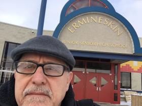 Math Catchers Shawn Desaulniers and Veselin Jungic spent an hour talking about mathematics and exploring the properties of Möbius strips with a group of Grade 7 students from Ermineskin Junior High School. We would like to thank Mrs. Jennifer Langford for her hospitality and Mr. Ahmad Jawad for arranging our visit.