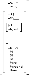 When S targets NP, the features [+PT, S\___] are added externally to NP (i.e., they are adjoined to it. When WH targets NP, the features [+WHT, +WH\___] are adjoined to the previous structure: