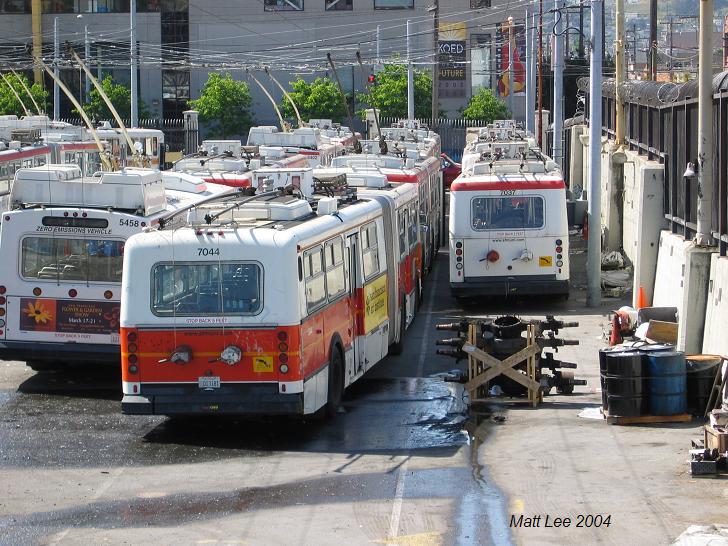 Rear shot of New Flyer artics at Potrero Garage. 1 JN 2004. Photo by Matt Lee.