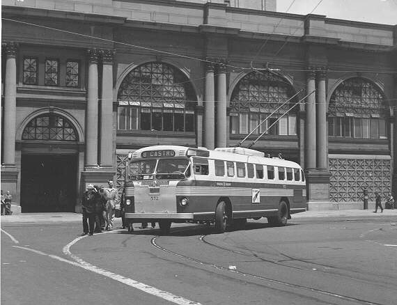 Twin Coach 572 at the Ferry Loop terminal. The one-piece destination sign indicates an early picture. Photographer and date unknown.