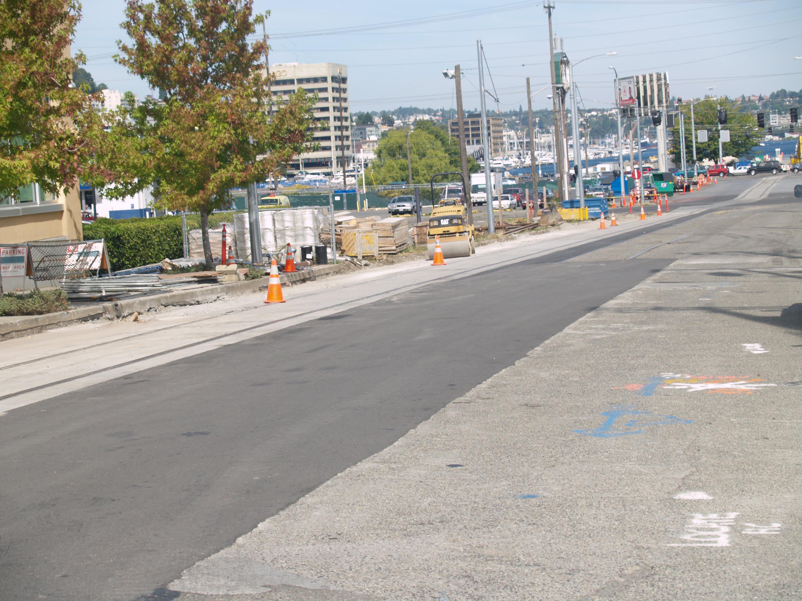 The north bound tracks on Terry Ave N. at Republican St. Photo by R. C. DeArmond. 7 SE 2007.