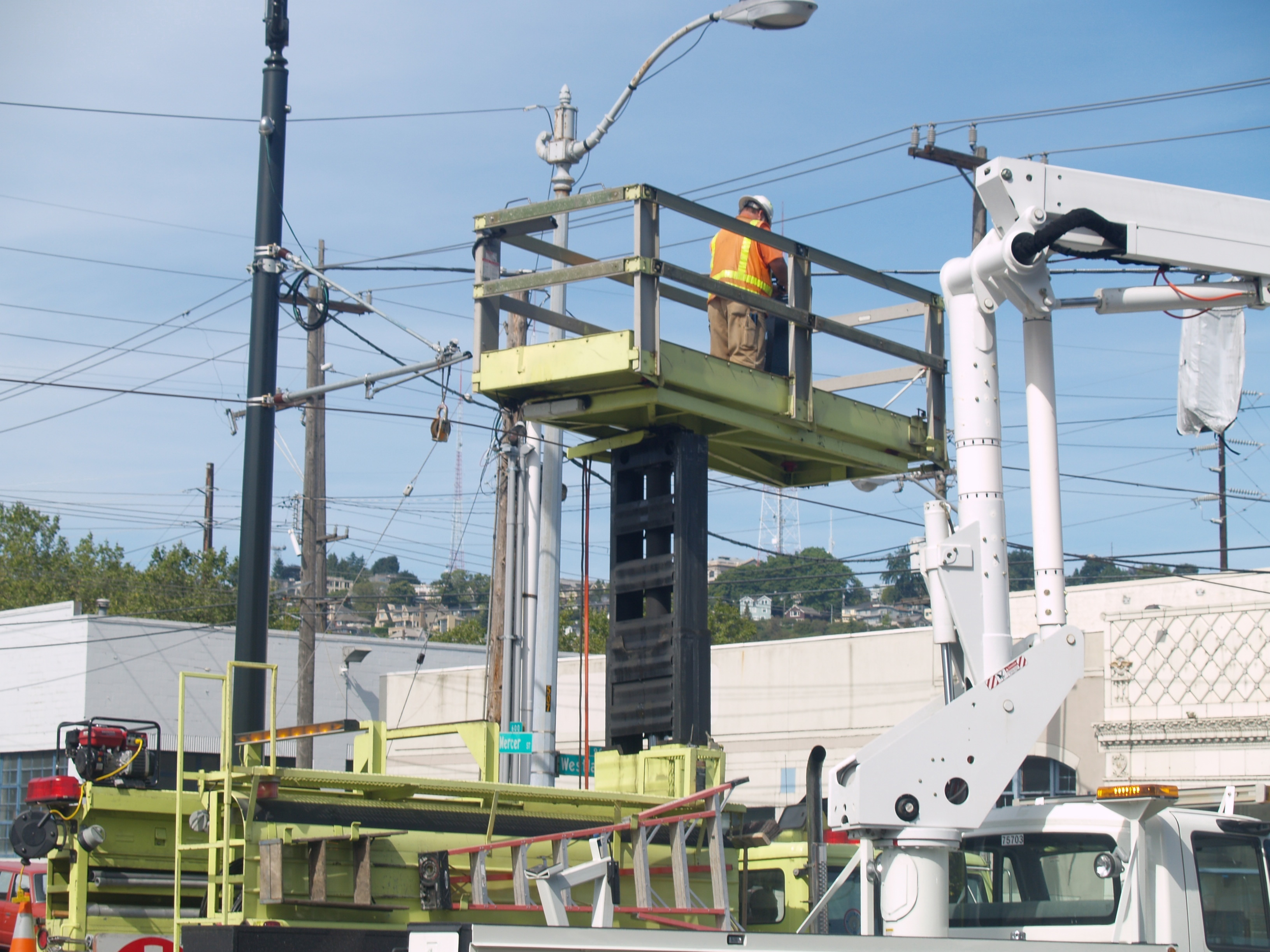 The mechanism used to string trolley wire for the new streetcar line. Westlake Ave. N. and Republican St. Photo by R. C. DeArmond. 7 SE 2007.