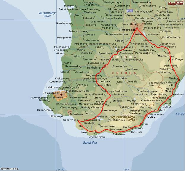 line. The red indicates a system of transportation in the Crimea for tourists.