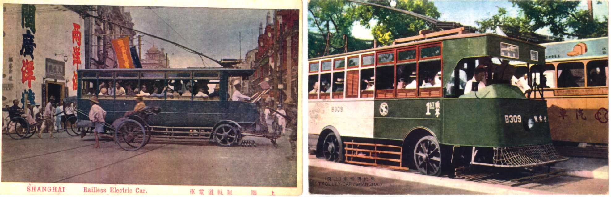 Early (1930s?) trolleybus in Shanghai. Model unkown, though British