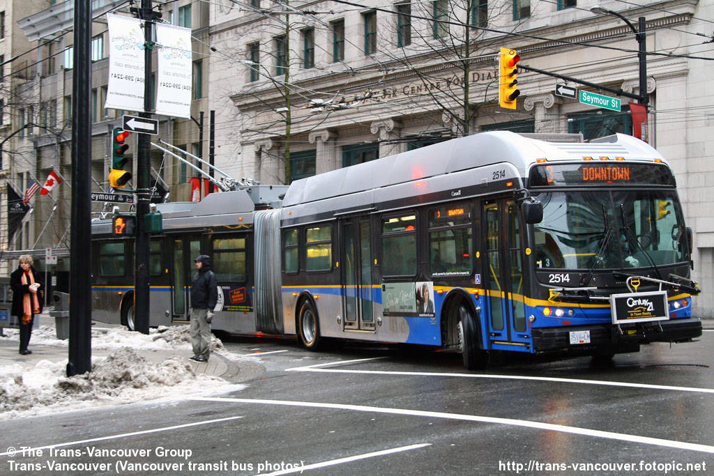 NFI E60-LFR 2514 turning from westbound Hastings to northbound Seymour. This