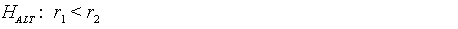 If you only wanted to know whether the difference between the two correlations is statistically significant, your hypotheses would be: