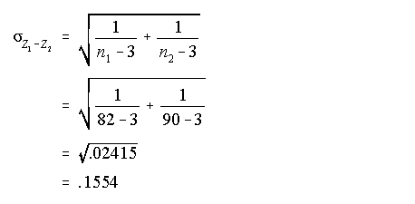 c. Perform the test. What is the probability of getting a difference between Pearson's r as large as the one between .48 and .22 (with samples of 82 and 90) when there is no difference in the population correlations? Do you reject the null?
