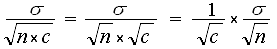 Bigger samples produce smaller standard errors. The relation is an inverse square root relation: increasing the sample size by a factor of C decreases the standard error by a factor of one over the square root of C.