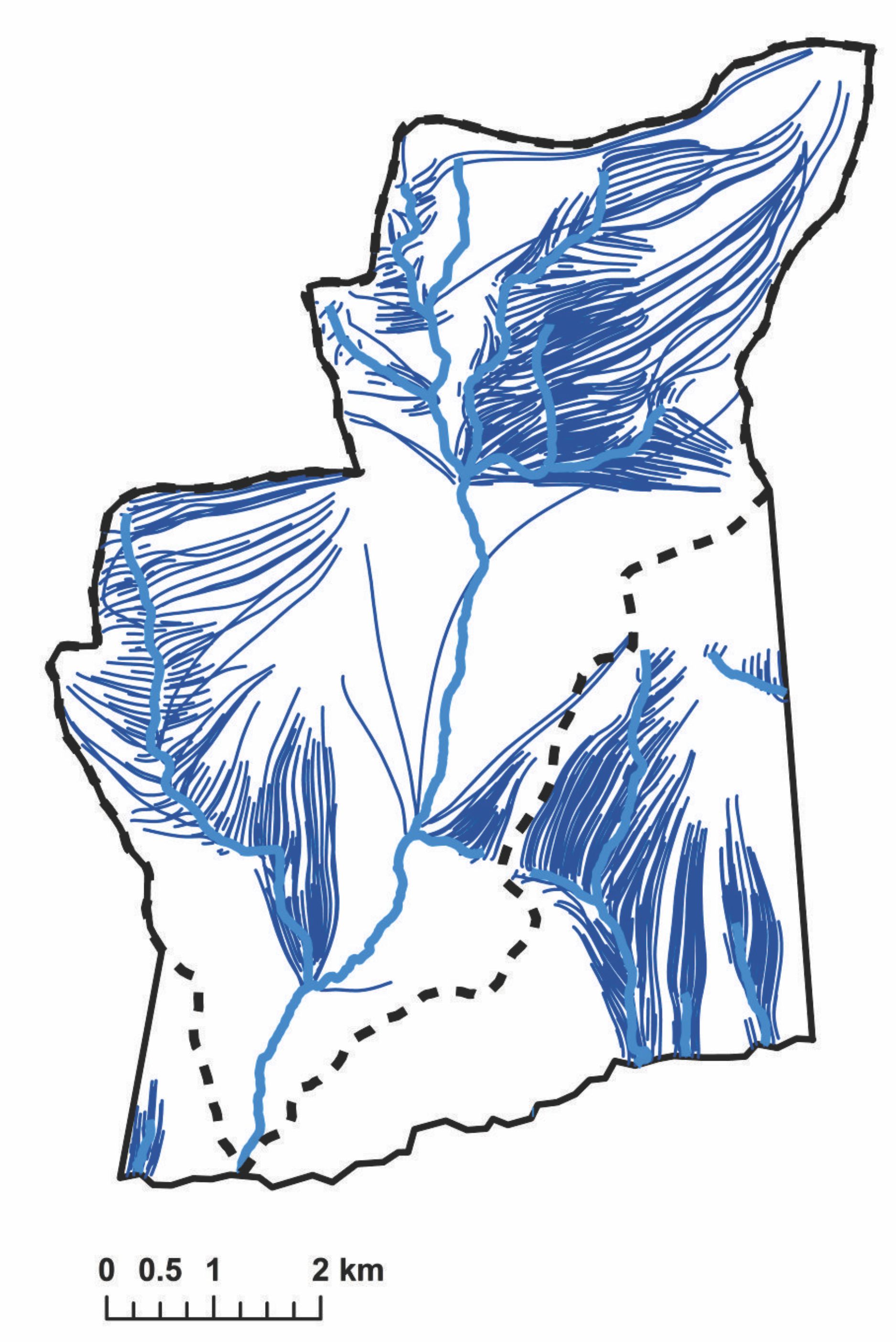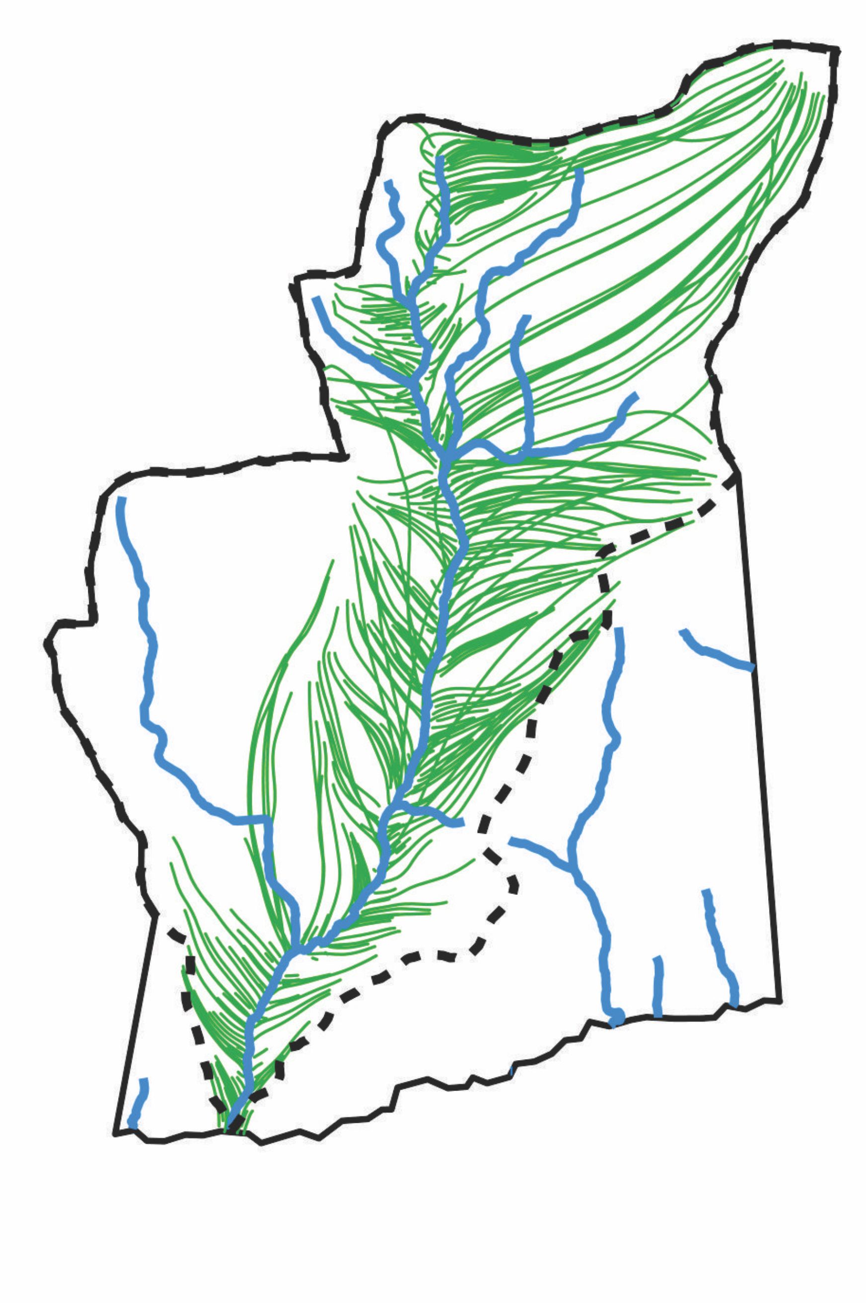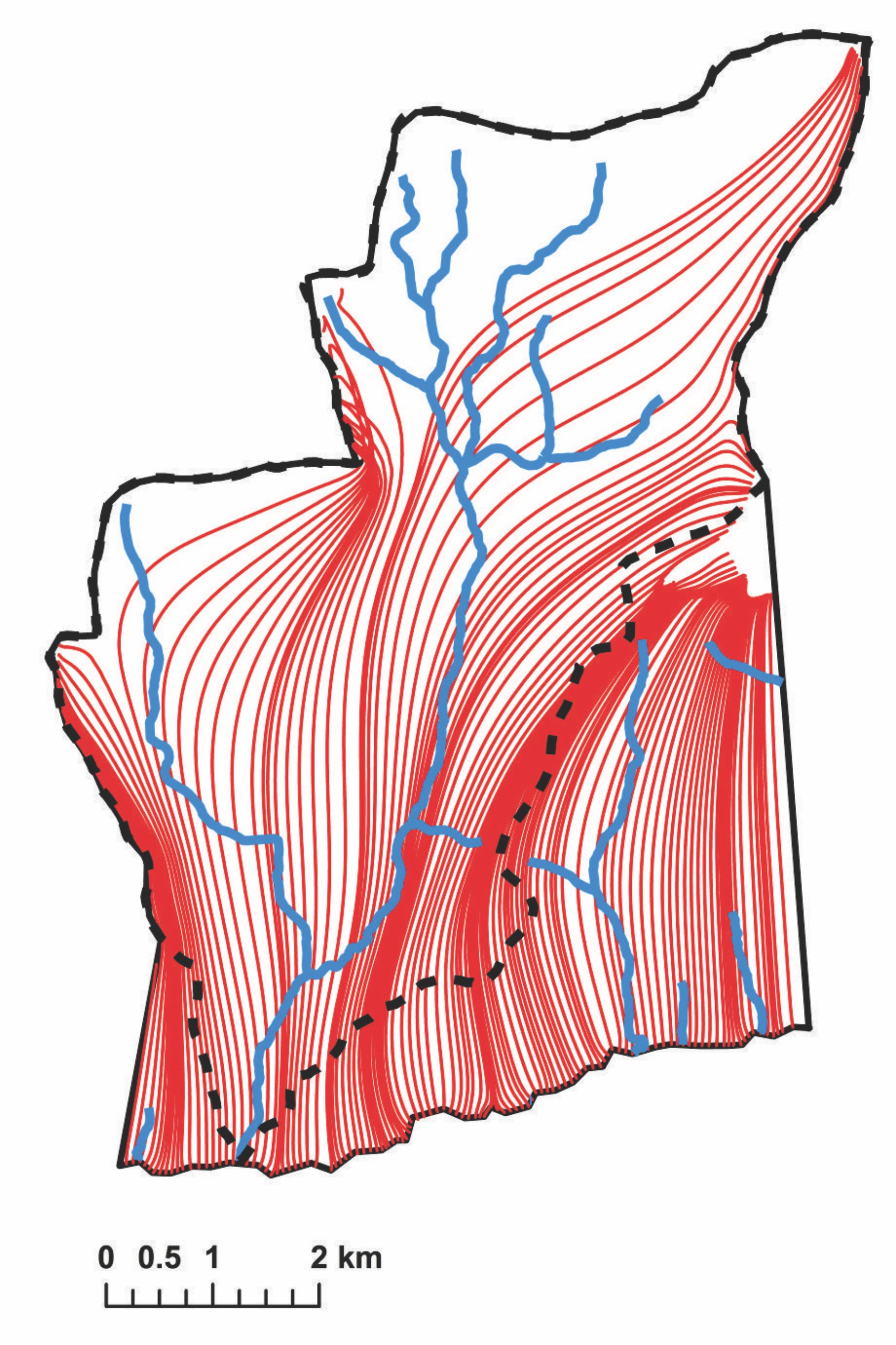 Saturated groundwater flow in Daves Creek in the Okanagan Basin was modeled to show contributions of deep groundwater flow to mountain block recharge (MBR) and higher and lower order streams in the watershed as illustrated in the figures below. |