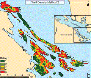 - Pumping Hazards - pumping hazard was assessed based on well density on all Gulf Islands.