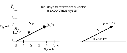 The vector in our diagram has vx = 4 and vy =2 so v = 4.47.