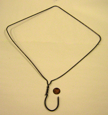 Original Construction: The coathanger was stretched to form a diamond shape with one bend directly opposite the hook. The end of the hook was filed flat.