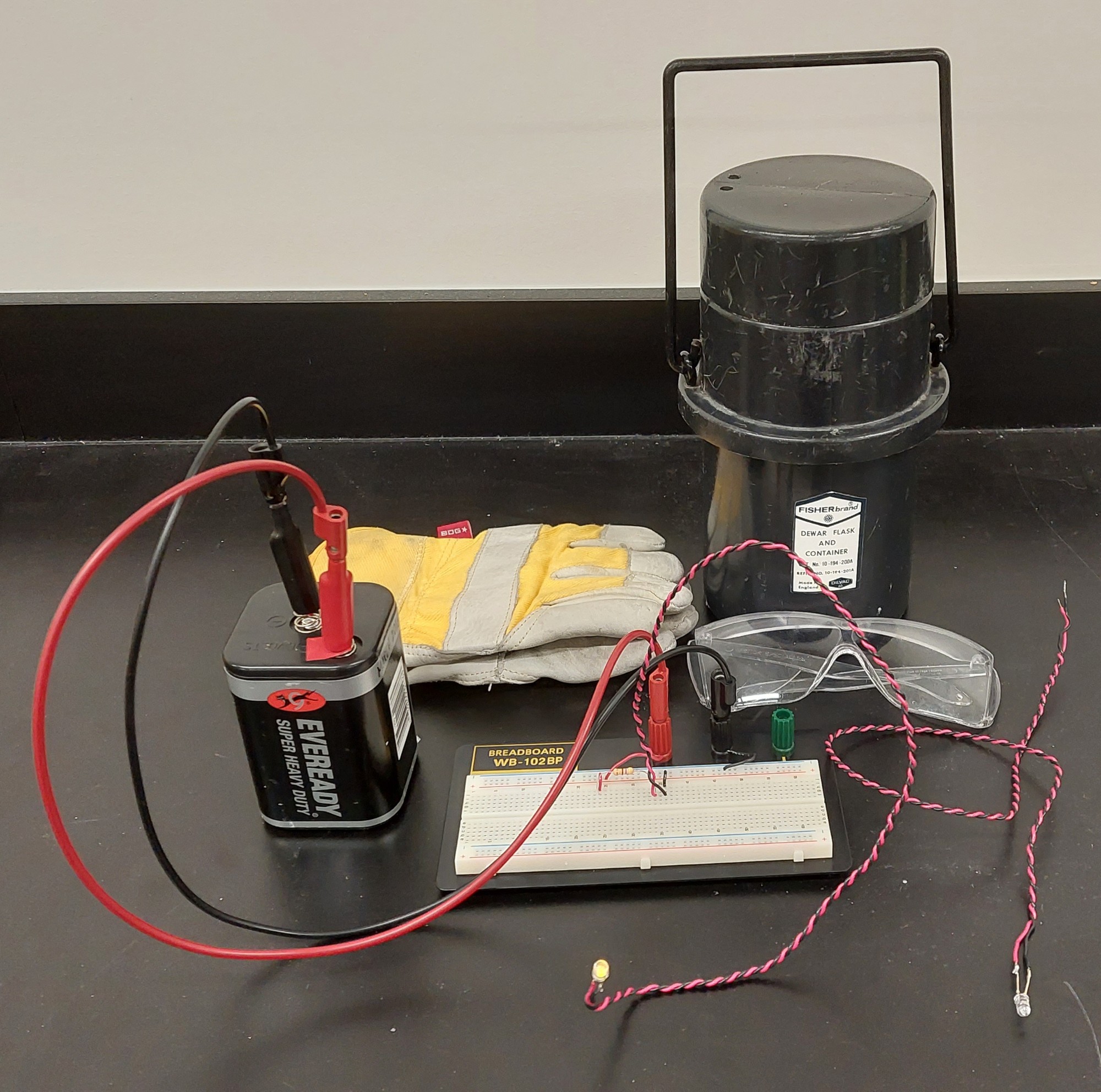 - Dip the LED in liquid nitrogen for a few seconds until the nitrogen is no longer bubbling vigorously.