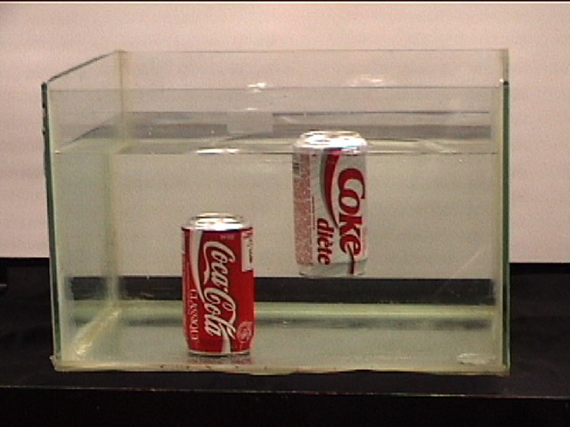 - Test whether the can of Diet Coke floats and the can of regular Coke sinks.