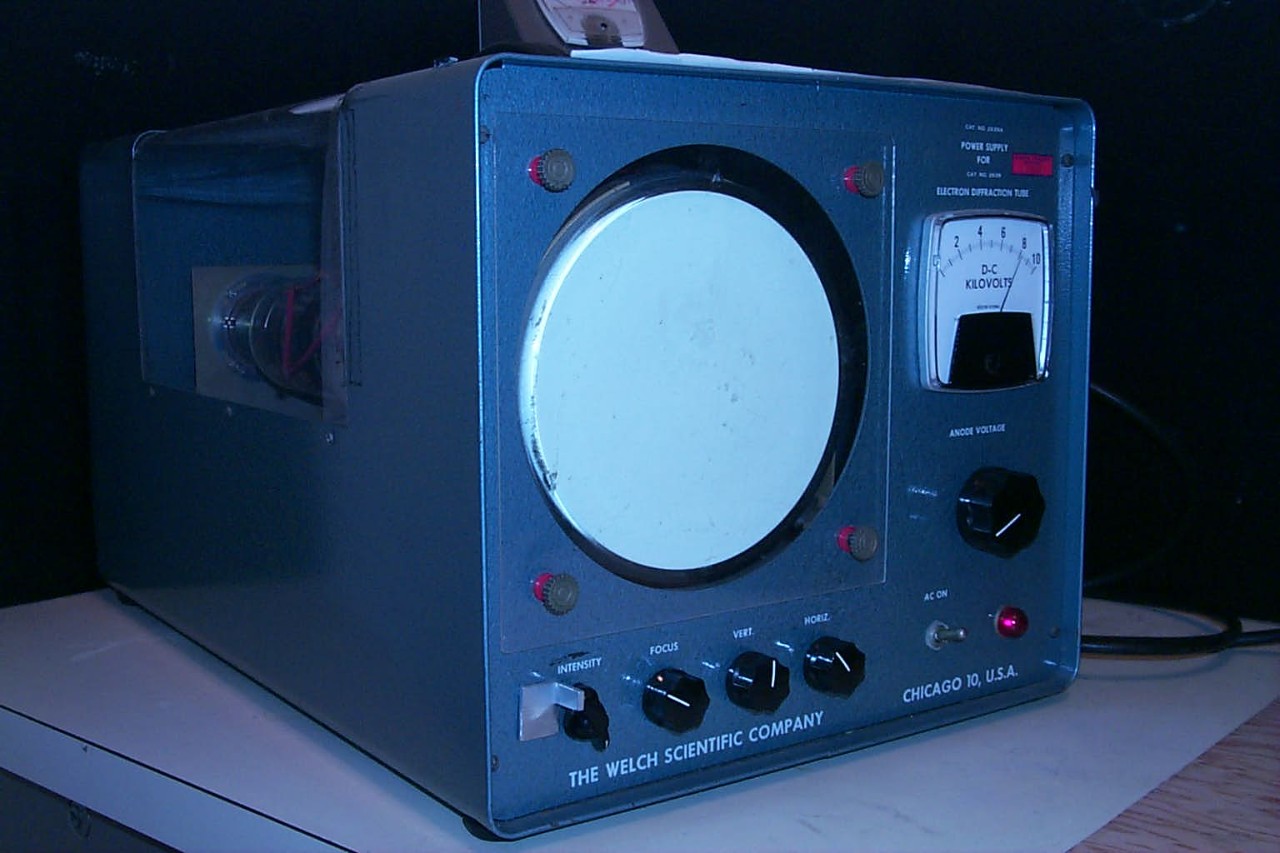 - We use a Welch model 2639 electron diffraction tube. The tube has graphite and aluminum foils mounted on a grid between the electron gun and the screen of the tube. The path of the electron beam may be varied so that the beam passes through one of the foils or misses both.
