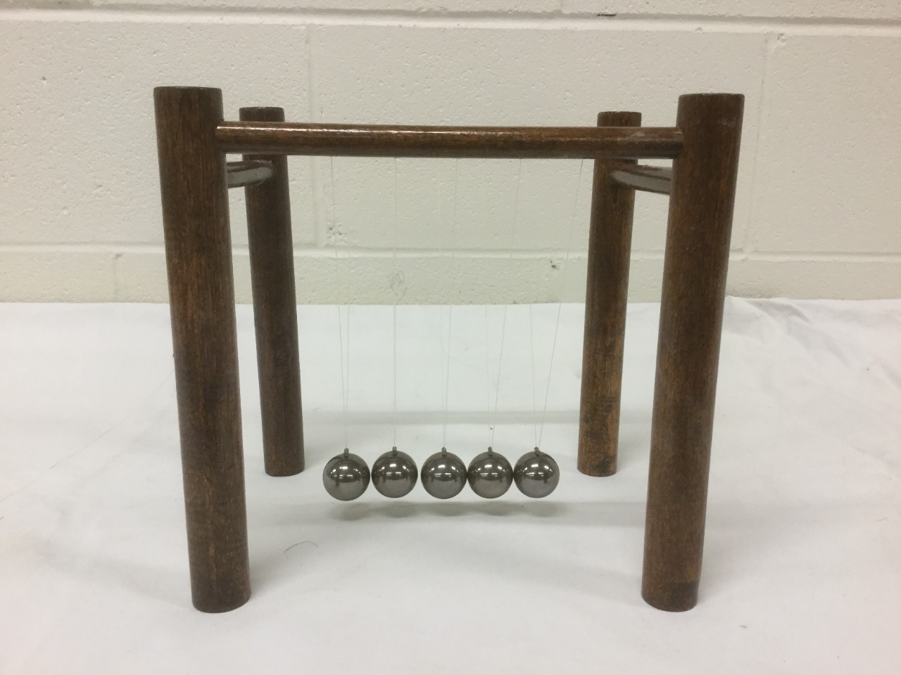 When the first ball is lifted and released, it collides with the row of stationary balls. All its momentum and energy are transferred through the balls to the last ball on the row. If you lift and release n balls, n balls will carry the same momentum and energy after the collision.