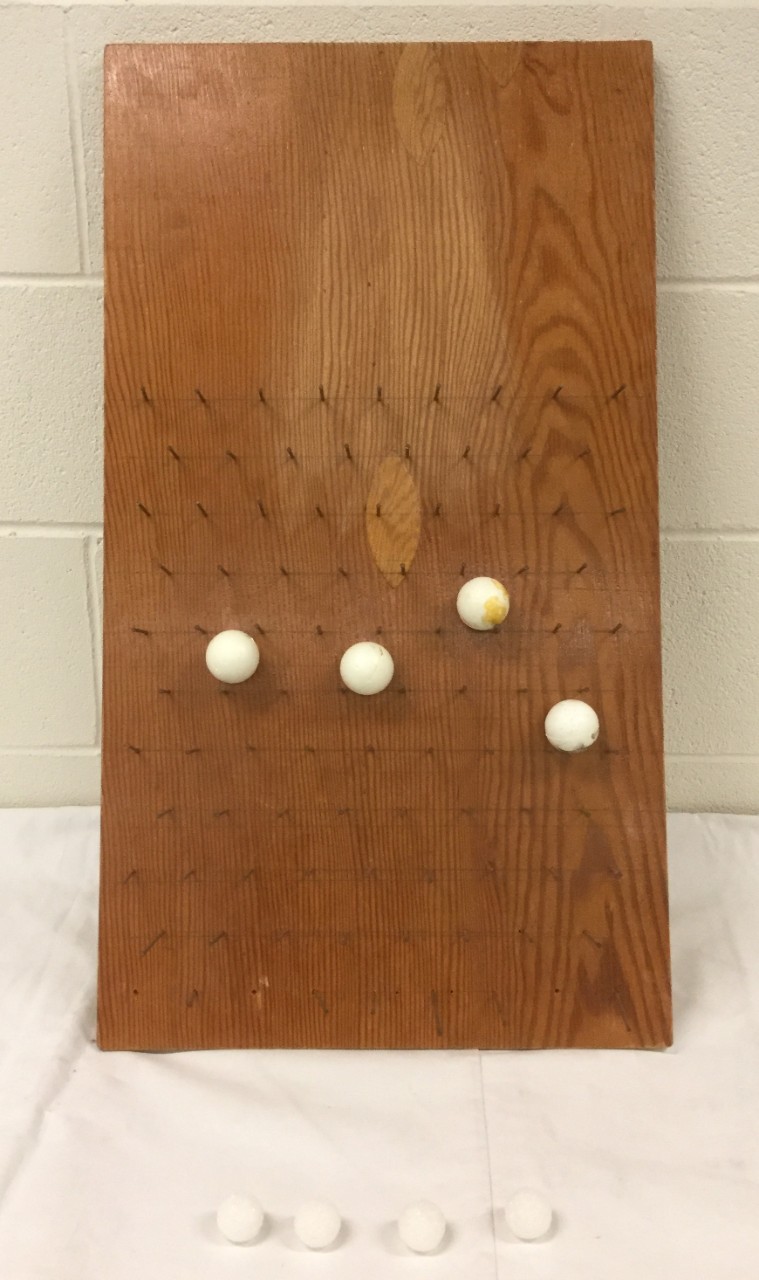 This model simulates the flow of electrons through a conductor as well as the resistance experienced by the electrons. When electrons flow through a conducting medium, they will run into a complex lattice of atoms and thus they are not moving in a straight line. In this model, ping pong balls navigating through an arrangement of nails represent free electrons moving past atoms in a conductor.