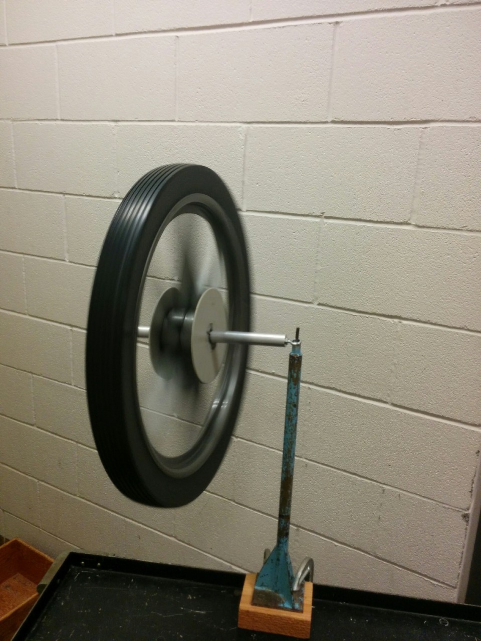 - Clamp the precession post to a table with enough clearance so that the wheel won't hit anything while precessing. Use both clamps.