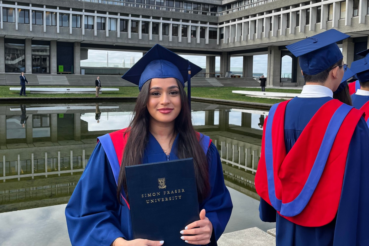 Marihah Hussainly Farook graduated last week with a major in Communications and a minor in Print and Digital Publishing. During her undergraduate career at SFU, Marihah found a deep sense of belonging and community within the School of Communication and the Publishing program. While Marihah is grateful for the invaluable lessons and life-long connections, she is determined, now more than ever, to move forward and reach new heights.