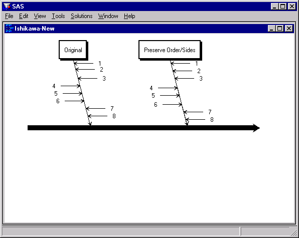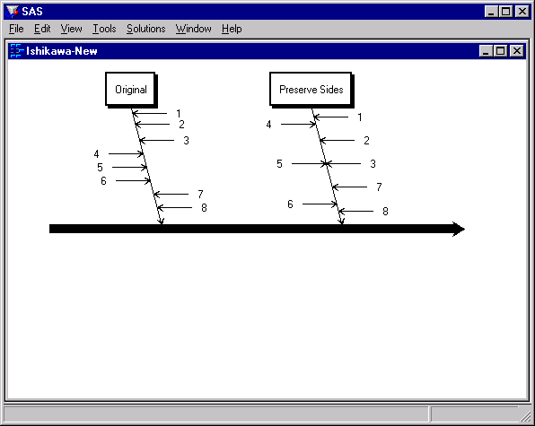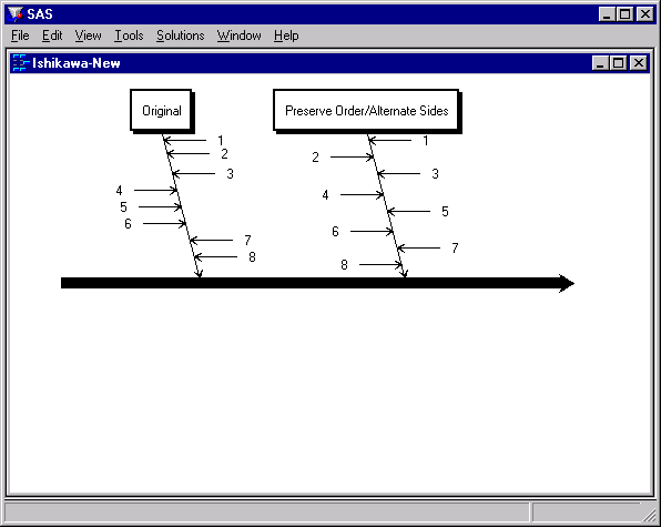 Note that stems 4-6 remain on the left, stems 1-3 and 7-8 remain on the right, and the order from tail to head is still 1-8. However, the stems are now spaced uniformly.