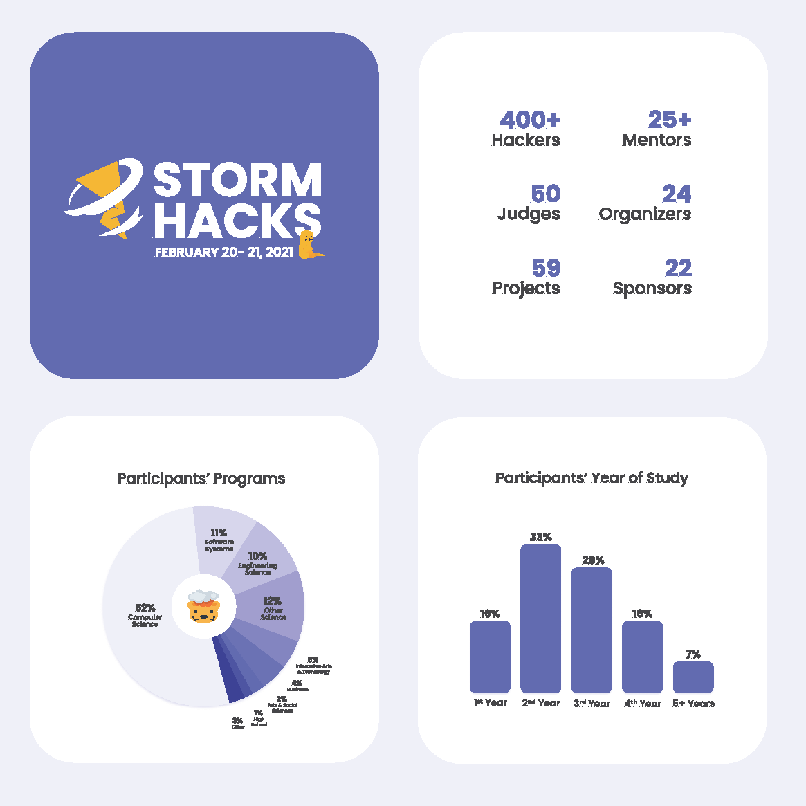 Over the course of 24 hours on February 20th and 21st, students from the School of Interactive Arts & Technology and across the university participated in the inaugural StormHacks hackathon, a 24-hour virtual hackathon put on by SFU Surge and accredited by Major League Hacking (MLH), a global league for student hackathons.