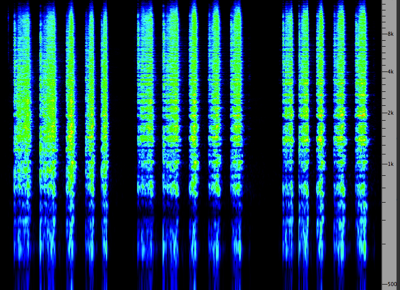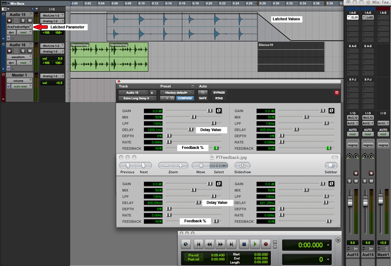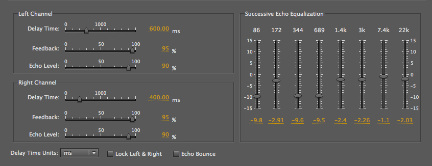PVC pipe (blue track) with delays of 800 and 1200 ms,