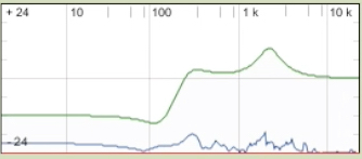 The fourth video demo takes a very rich sound as its source, the large Salvator Mundi bell from the Salzburg cathedral in a short solo ring. We will use this opportunity to show how to add a resonance filter to the output stream. The controls are colour-coded in a reddish orange, and the diagram below shows the one we settled on for the bell (in addition to the high pass EQ). The resonant frequency was set in the range above 800 Hz (and displayed in red) where numerous upper partials occur in the bell.