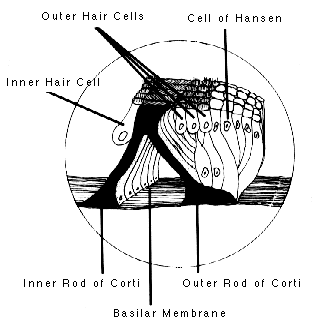 See: HEARING LOSS, SEMICIRCULAR CANALS, SENSORY-NEURAL HEARING LOSS, VESTIBULE, VOLLEY THEORY. Compare: TRANSDUCER.
