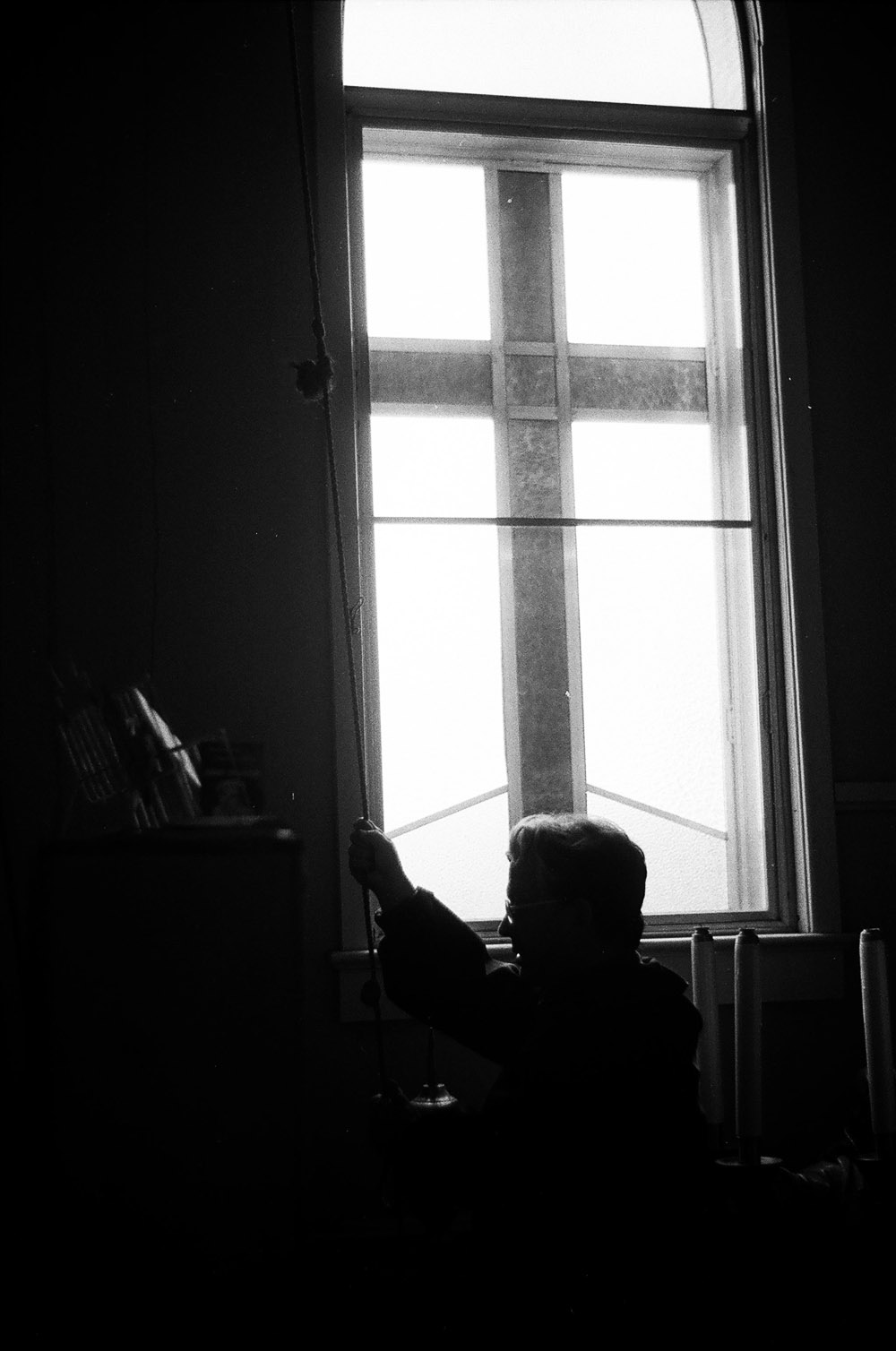 4. No bell, just talk, footsteps. Entering church, talking to ladies who are selling perogies. Not sure how to ring the bells. Woman puts on a nylon coat (2'40") and recordists walk upstairs with her, clunk, clunk and outside, bad wind at end.