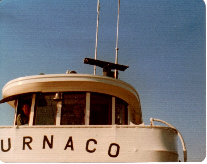 3. This is Vancouver's one and only Capt. William Coxwell, playing on a custom set of Airchime horns. This is a small coastal freighter. Continued to serenade Sunset Beach this way until shortly after the recording was made, when one or two complaints from local high (not early) risers forced the city to act on its antiquated By-law (see take 2). However, Coxwell still toots into the smaller communities up the coast. Note the increased reverb as the boat approaches; normally the opposite would happen but here Burrard Bridge catches the sound when it is nearest the mics. Compare the musical quality of phrasing in the Alouette fragment with the automated phrasing of the O Canada Horns. Recordists are waiting by wave wash on Sunset Beach for Capt. Coxwell to cruise by, melodiously. Several short tunes are performed. Nice close-up water sloshing sounds.