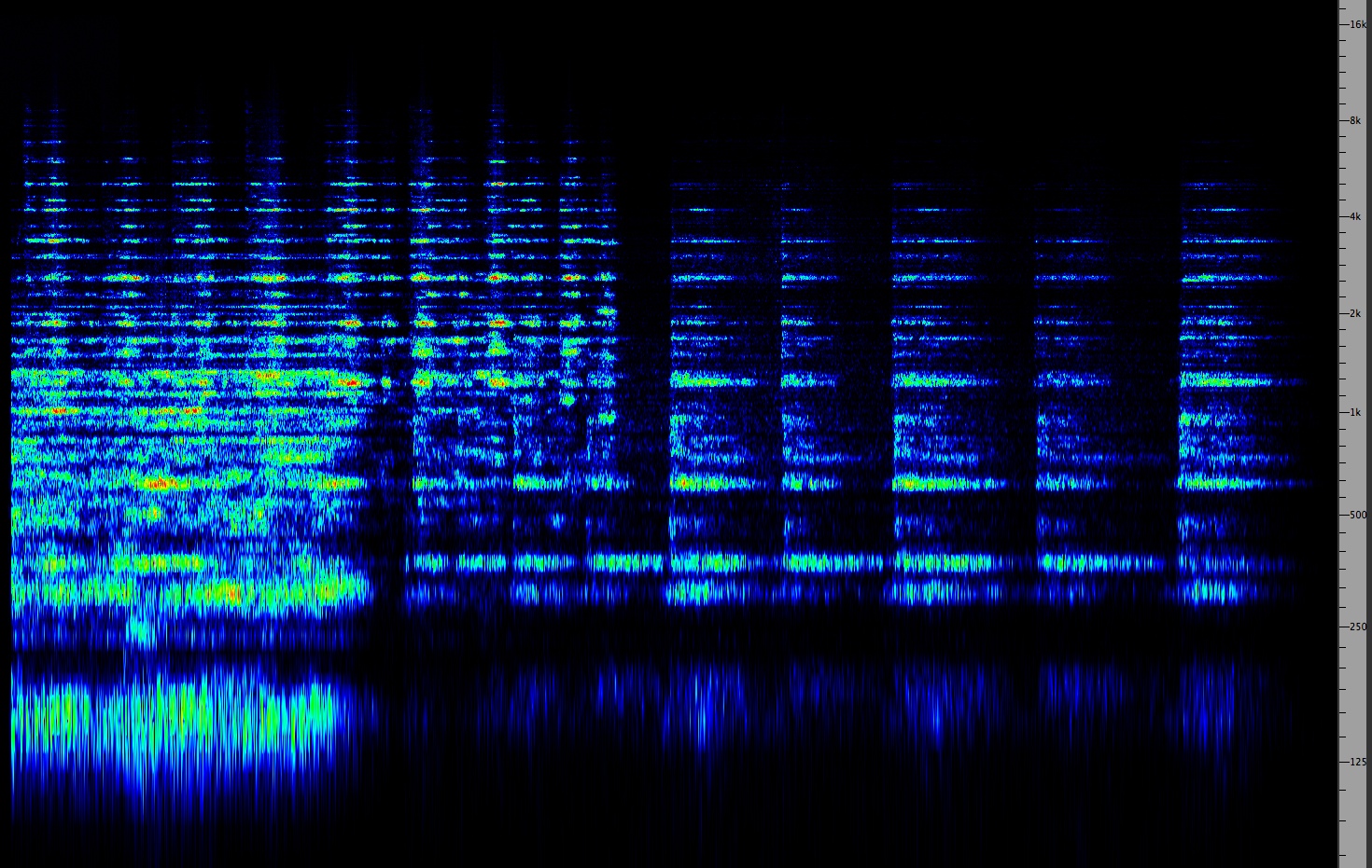 Finally, we exit the church, to return to the mundane world, symbolized by the way the original bells slow down and end, exposing more of the city ambience as they do. This is achieved by stretching two individual rings until they fade out.