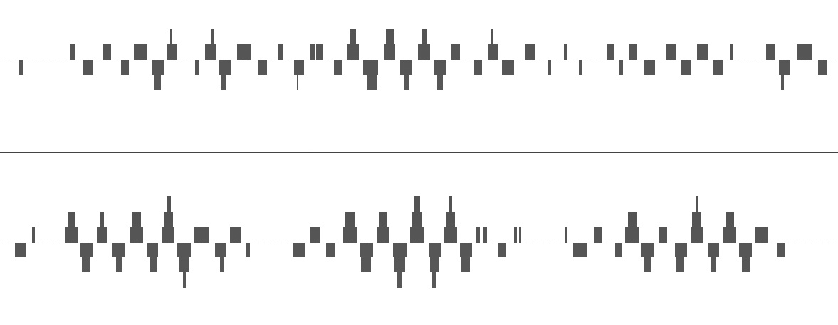 However, it is interesting to start with the original curves for what they called equal loudness. Tests with sine tones were done over the entire range of frequencies and at different levels of intensity (measured by the then new unit of the decibel). They found that the auditory system responds very differently to frequency at low and medium sound levels, and much more equally at high levels. Here's how this can be experienced.
