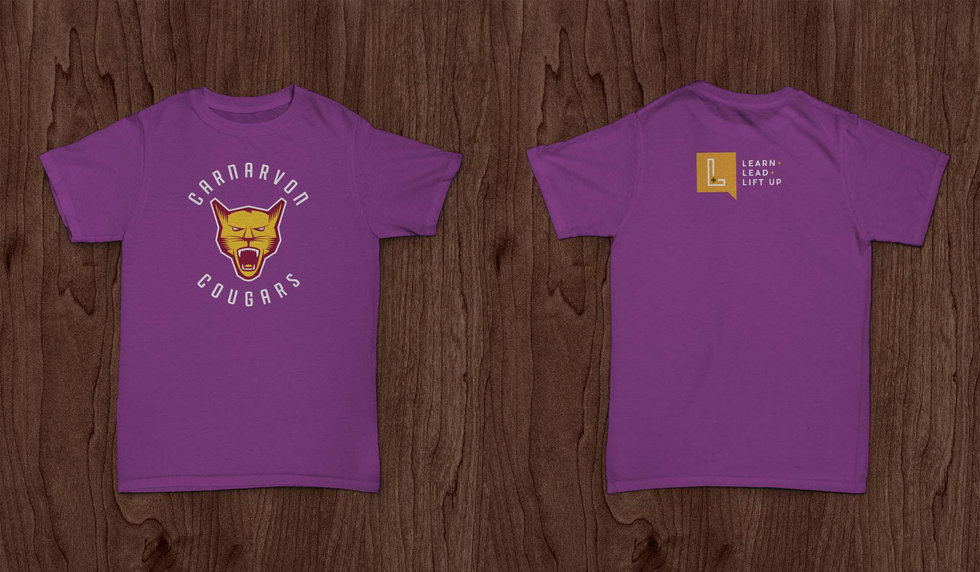 Both the new Carnarvon Cougars logo and the Learn + Lead + Lift Up program were instant hits with the students and staff, who now want to wear their Carnarvon school spirit on their literal sleeves. In response to this demand, I arranged the two logos onto t-shirts - the Carnarvon Cougars logo on the front, and the Learn + Lead + Lift Up logo on the upper back - which will soon be sold to students and staff. It's been pretty amazing to see my work go from a concept to a shirt that students and staff are paying to wear!