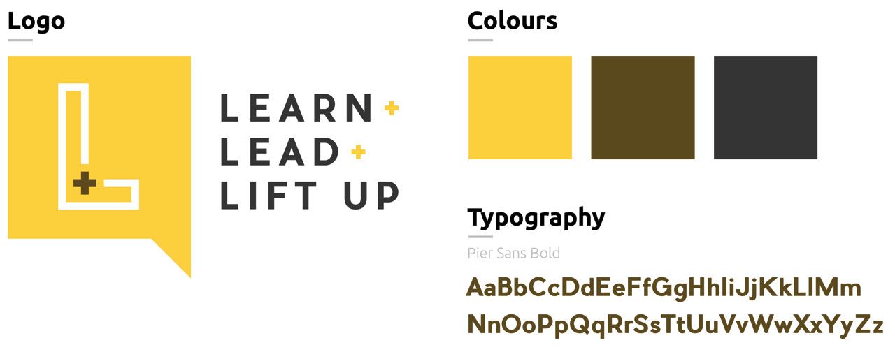 The Learn + Lead + Lift Up logo references the repeated 'L's and plus signs in the program's name, making it very clear what the logomark stands for.