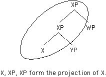 The last sentence in the above paragraph is intended to cover adjunction. If Y is adjoined to XP, a new node XP is created such that it immediately dominates Y and XP. Thus the projection of X may grow as long as some node is adjoined to XP, or in some case to X.