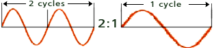 a doubling (2X) or halving (/2) of a frequency