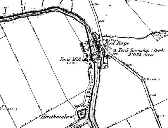 Ford Forge (Ford Mill), Northumberland, England shown in an 1866 ordnance map