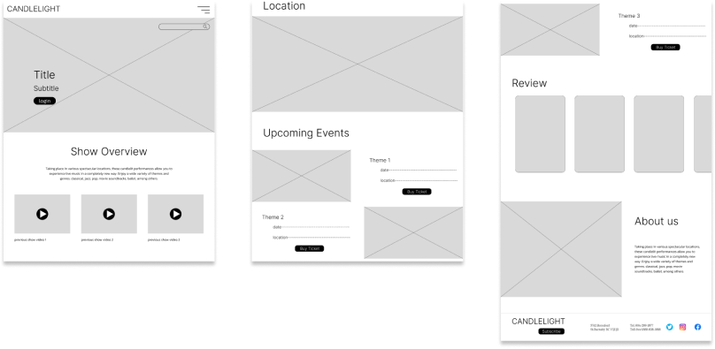 We identified that fever has strong branding for their event service, however the site experiences are extremely varied between the microsite and the ticket website that it links to both in structure and in design. The information about the event is scattered around multiple unrelated websites and is unspecific about the experience. Our goal was to create a cohesive microsite that communicates the experience of Candlelight Concerts for a vancouver audience.